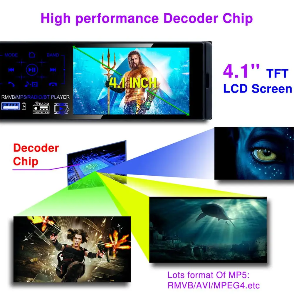Car Radio 1din Autoradio 4.1 inch Capacitive Touch Screen Audio Mirror Link Stereo Bluetooth IR Rea