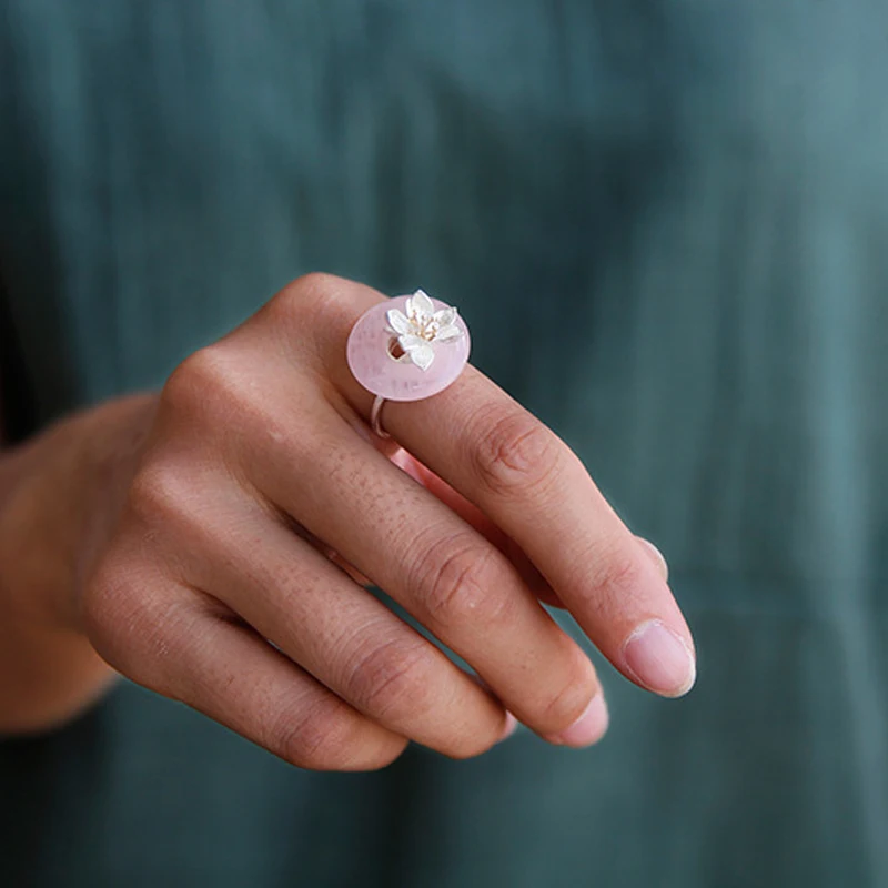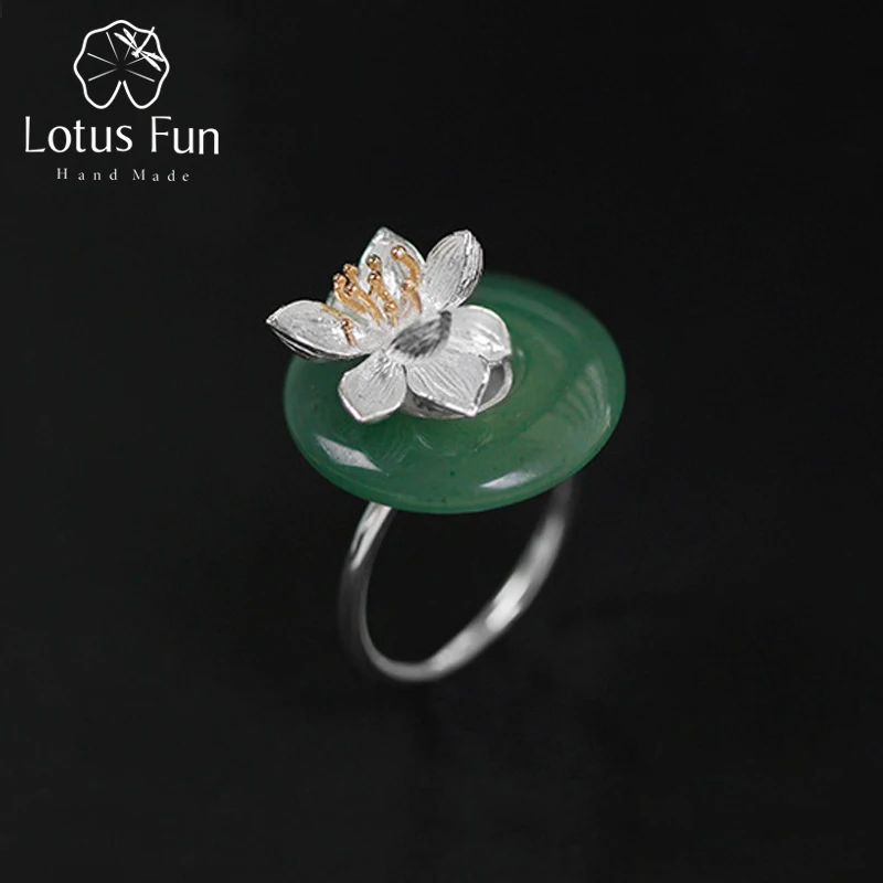 Lotus Fun Real 925 Sterling Silver Natural Pink Stone Creative Handmade Fine Jewelry Lotus Whispers